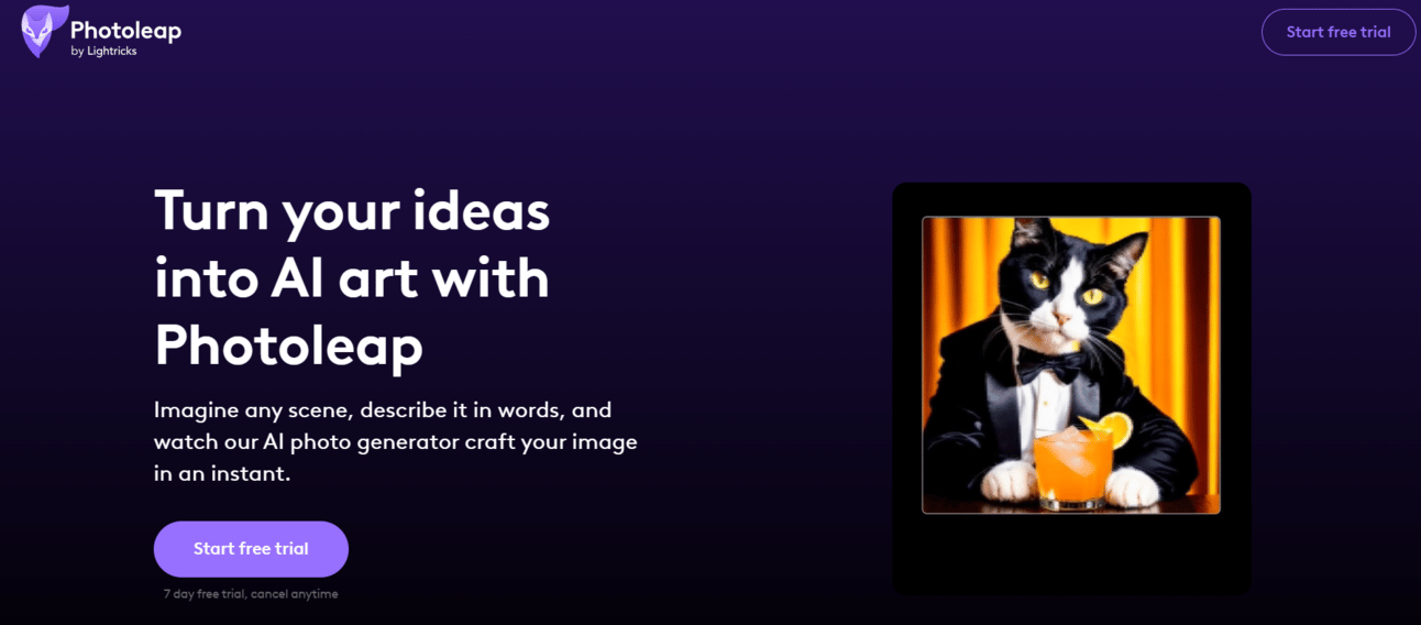 Photoleap is one of the series of photo editing AI apps that have appeared recently and offer similar features and capabilities. Free trial is available for 7 days (with a limit of 15 image generations/hour) with credit card registration.