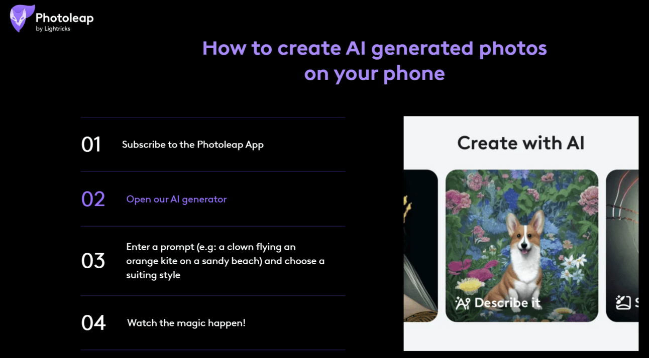 Photoleap’s AI capabilities extend beyond text-based image generation. Here are some other exciting features: