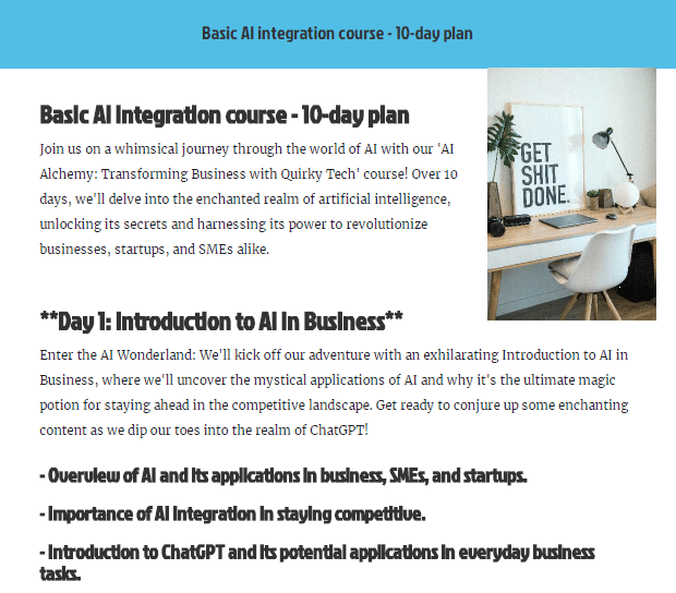 4. Preview and Share: Preview your creation, export it, and share it with your audience! We tried Designerr to create our LikeMagicAI.com “AI in my every day work” course (coming soon). Check it out and you can have a glimpse into how Designrr operates.