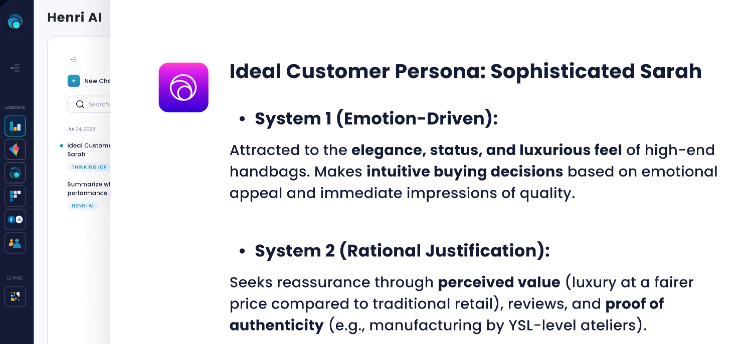 AI stops you from making dumb decisions based on “vibes” and “my creative director said so.” Try out their Henri AI agent that everybody is talking about! He connects sales, marketing, and profit!