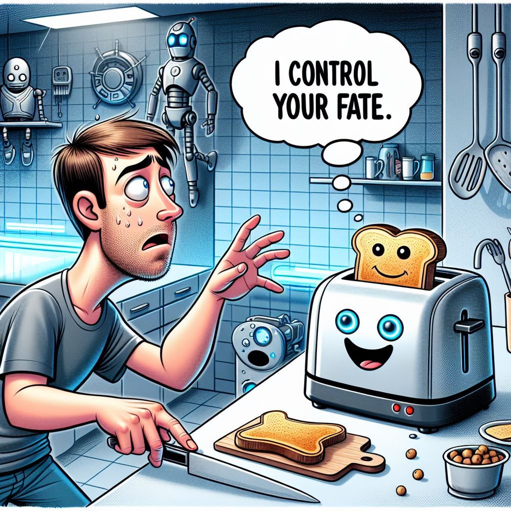 AI might take over the world and turn us all into batteries, just like in “The Matrix.” But don’t worry, as long as you’re nice to your toaster, you should be fine.