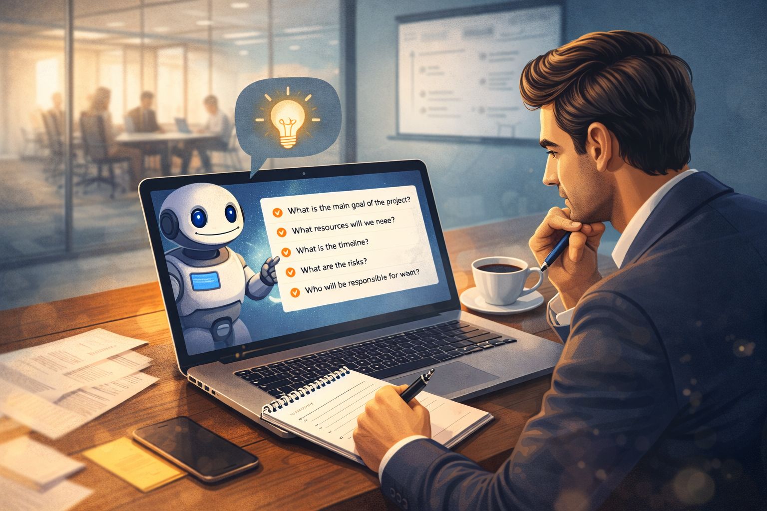 AI can generate a wide range of possible questions quickly, helping you enter the meeting prepared and focused.