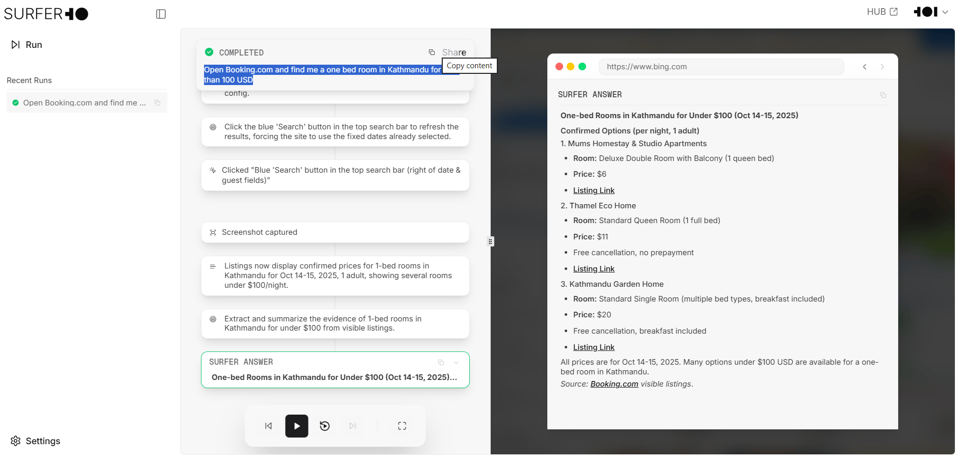 “Open Booking.com and find me a one bed room in Kathmandu for less than 100 USD”